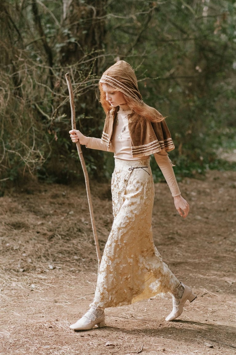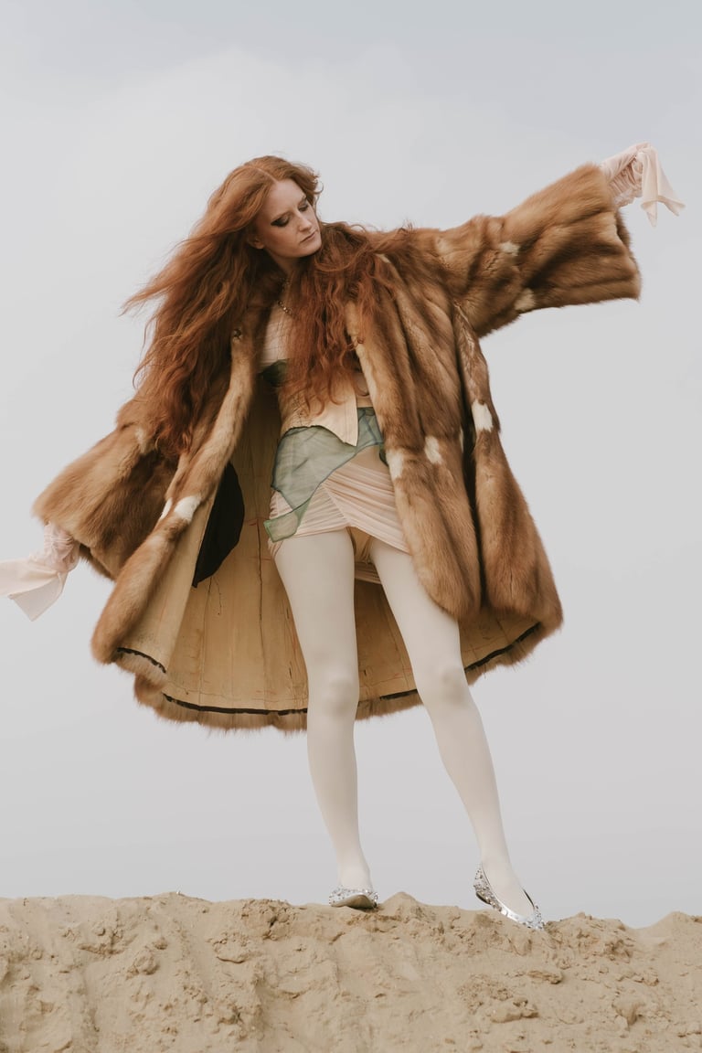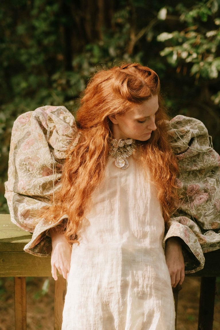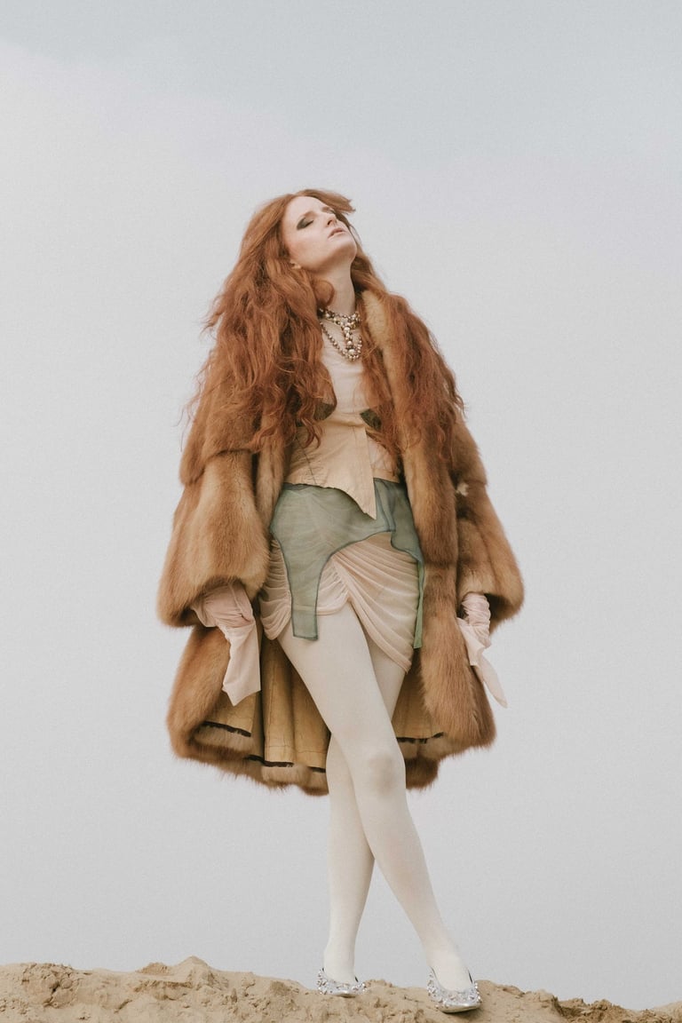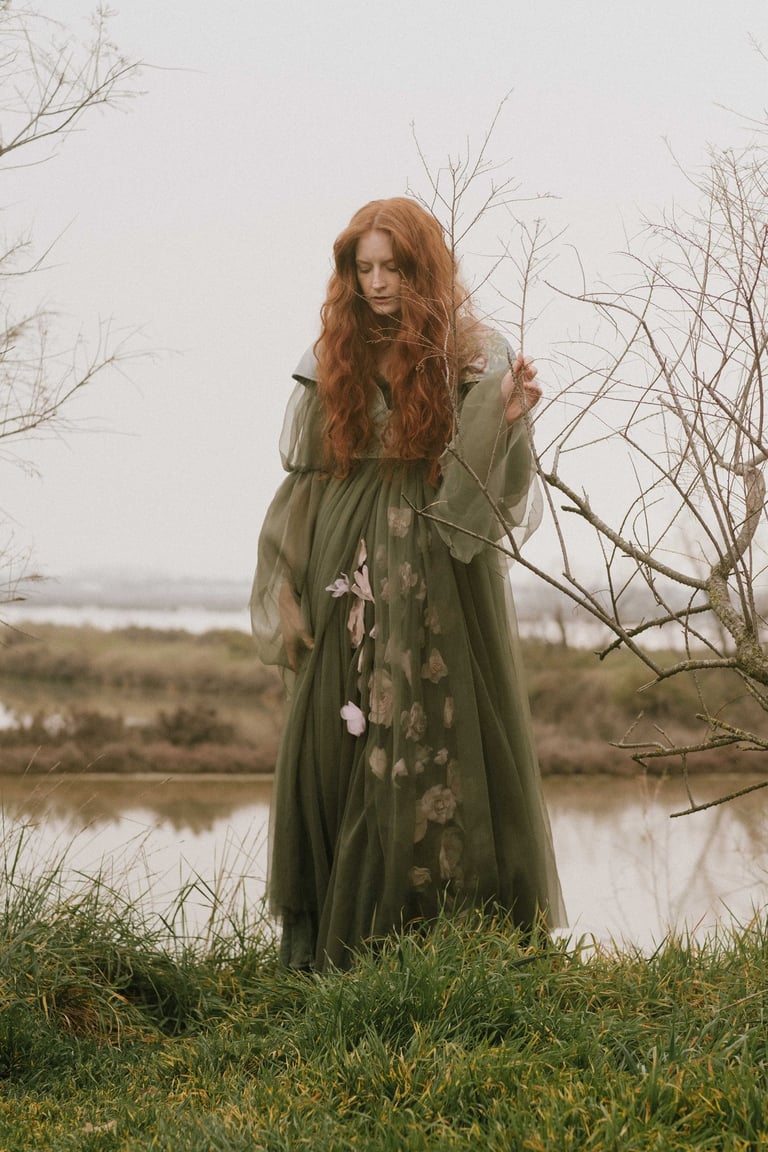 Focusing carefully on the Pre-Raphaelite artistic endeavor and its enormous influence on the visual representation of today’s fashion and society, the styling represents the meticulous search for the cohesion of the two aforementioned historical periods, where the composed refinement of Pre-Raphaelite women could meet with the canon-free expression of nowadays.